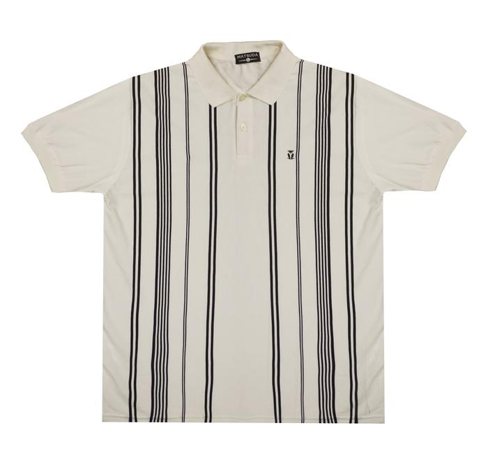 MATSUDA Kashiwazaki Offwhite Kaos Polo Shirt Pria Kerah Salur - Offwhite L (LD 108 CM)