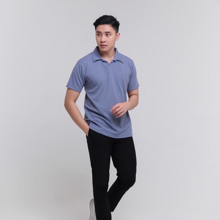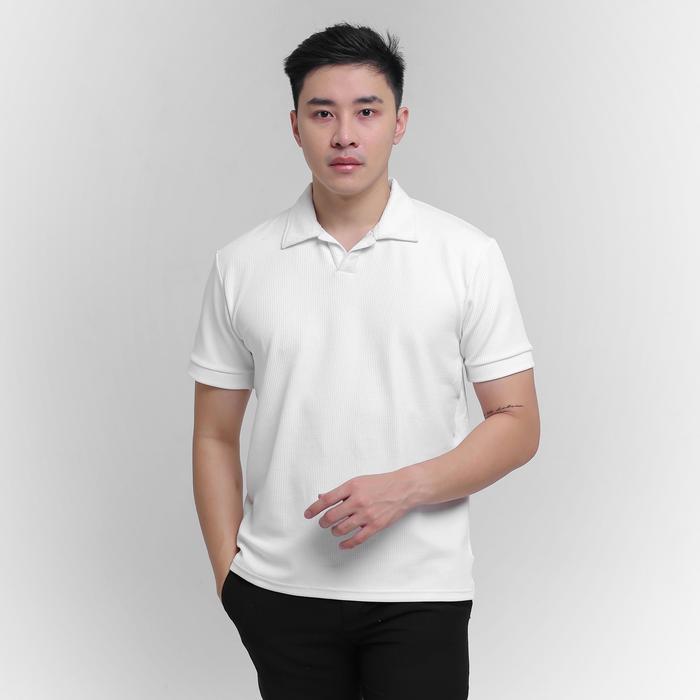 Kaos Polo Shirt Lifesky Waffle Wells Casual Pria Kerah Formal Casual Dark Kancing Pendek kaospolo - White XL