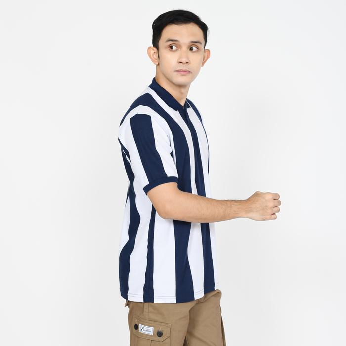Kaos Poloshirt Pria Motif Salur Tegak Lengan Pendek Atasan Baju Dewasa Model Terbaru - NAVY GARIS PUTIH XL