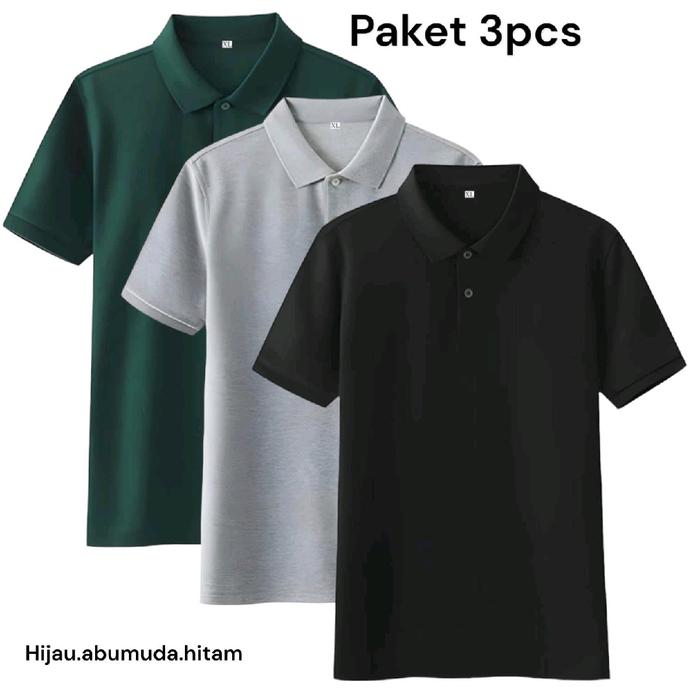 Kaos Polo / kaos Kerah Polos / paket 3pcs Lengan Pendek - hijau abumuda hitam M