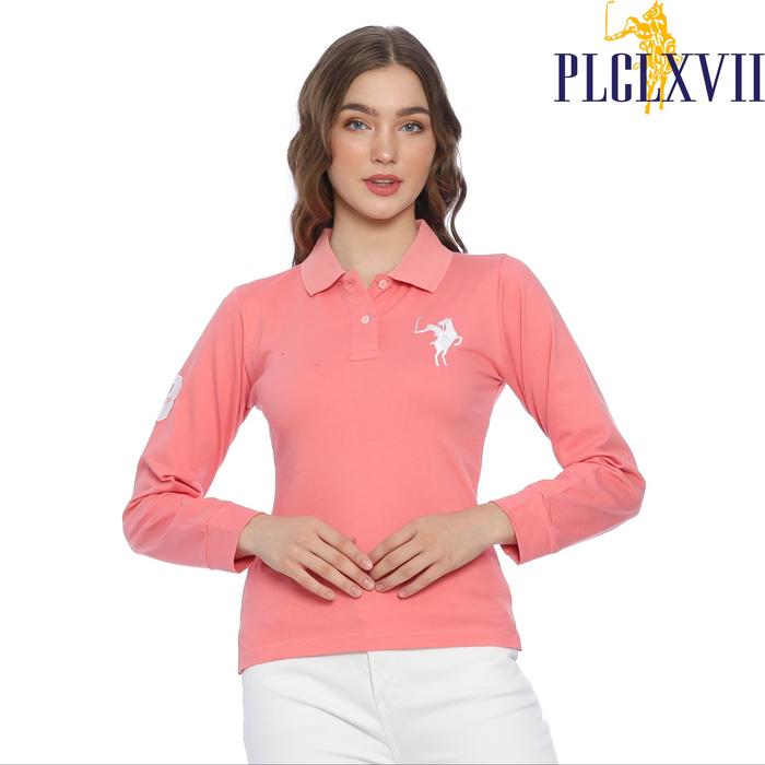 PLCLXVII - Polo Shirt Wanita - Polo Shirt Lengan Panjang Logo Besar 5006 Kaos Polos - Rose Pink S