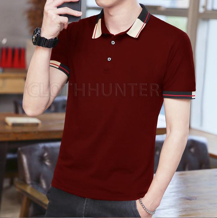 ALTRON Tshirt Kaos Pria Formal Lengan Pendek Kerah Polo Shirt Man Bahan Katun Combed - Merah Maroon S