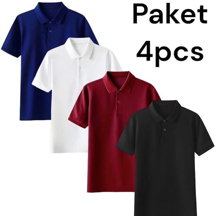 POLOSKING: Paket 4 PCS POLOS SHIRT KERAH POLOS / Kaos Polos Lengan Pendek /Kaos Trendy Pria - NAVY+PUTIH+MARON+HITAM M