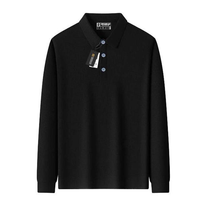 Reckblud - T-Shirt Polo Kerah Lengan Panjang Polos Unisex Original 07 - Hitam M