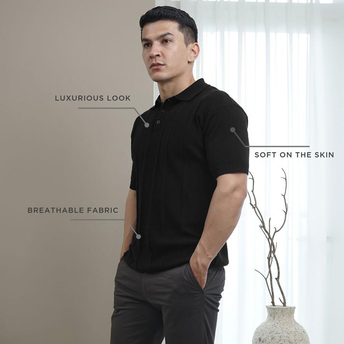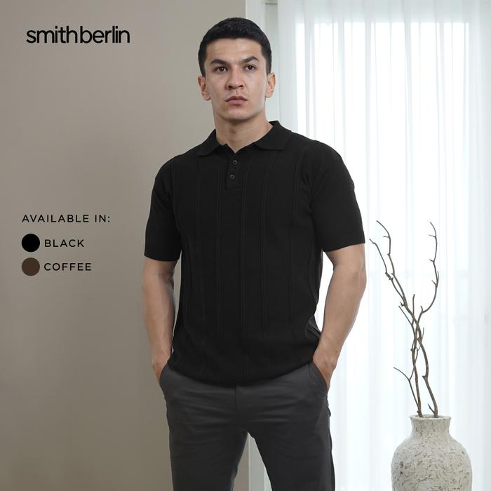 Smith Berlin Kishon Knit Modern Fit - Kaos Polo Pria Katun Knit Rajut Lengan Pendek Kerah Casual - Black S