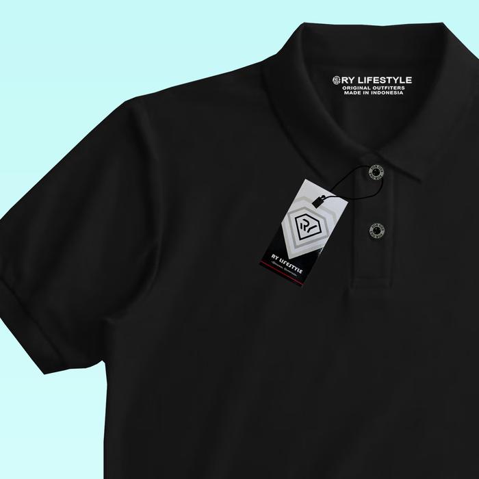 Ry Lifestyle - Polo Shirt Kaos Kerah Polo Original Panjang Sablon Pria Tebal Distro Keren Baju - Hitam S