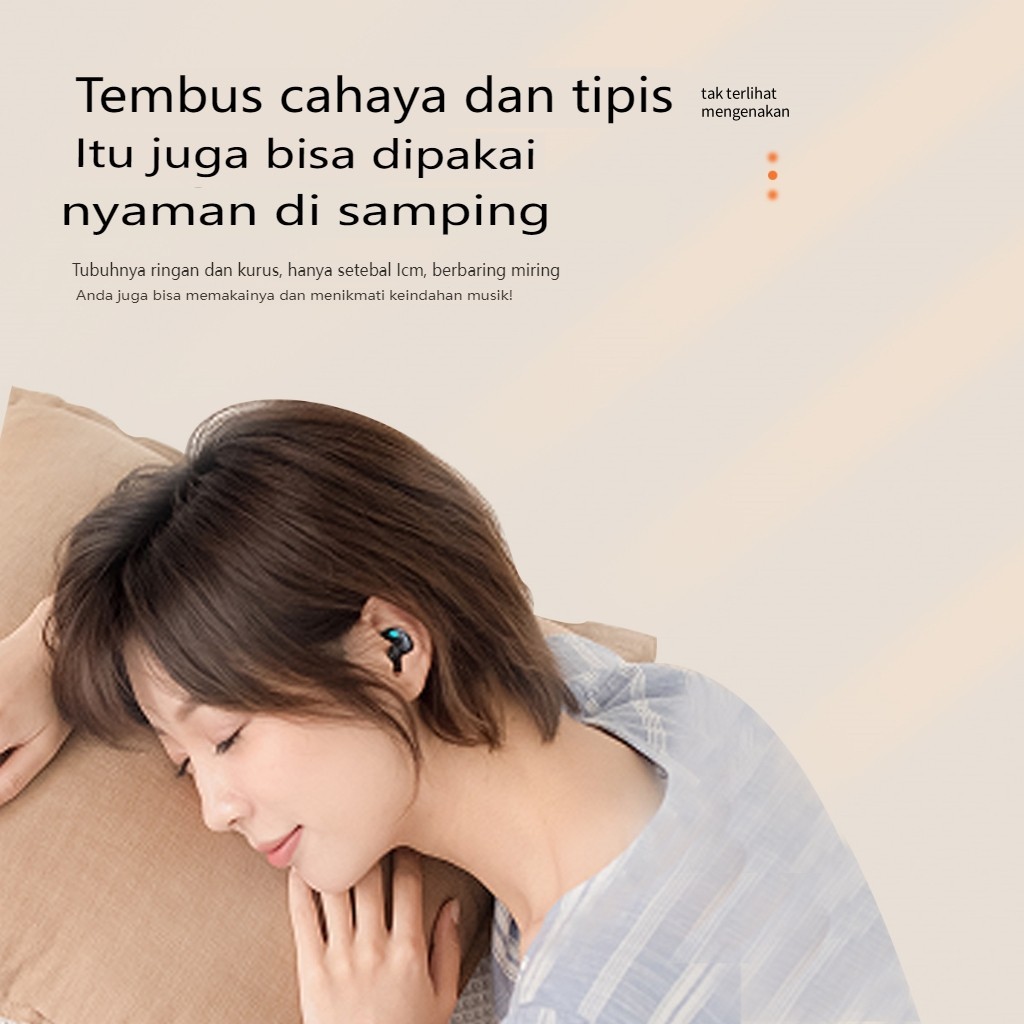 X55 Earbud Tidur Nirkabel dengan Mikrofon Stereo HiFi Builtin Tampilan LED Tombol Kontrol Tombol Headphone Tahan Air Headphone