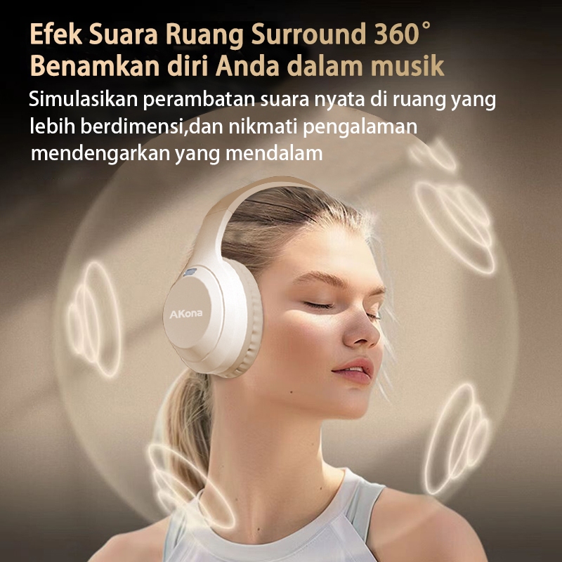 Akona Headphone Bluetooth 5.3 Hifi Bass Wireless Gaming Headset Bluetooth With Mic HD Noise Reduction Suara Sekitar 360° Earphone Bluetooth