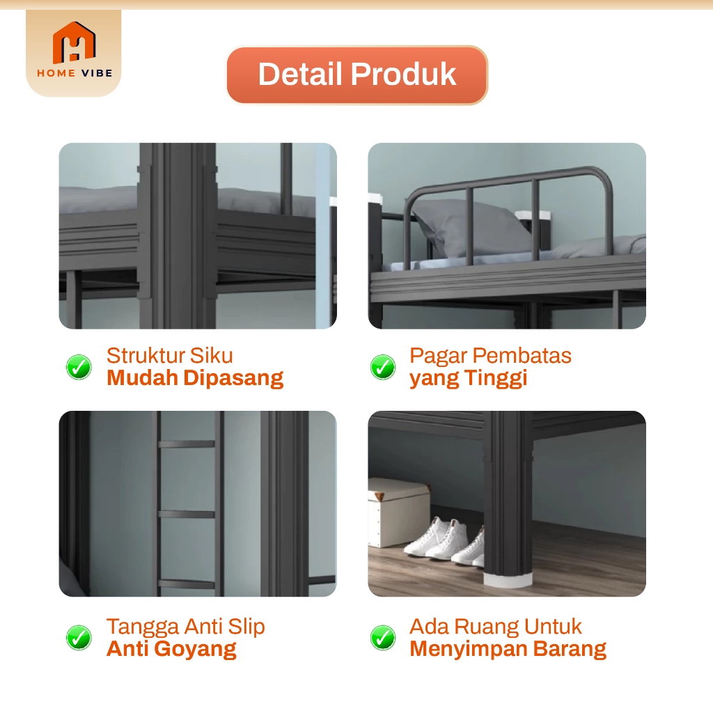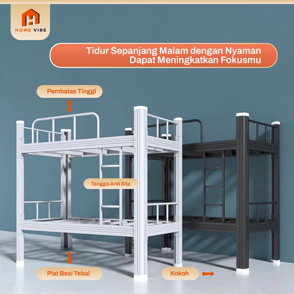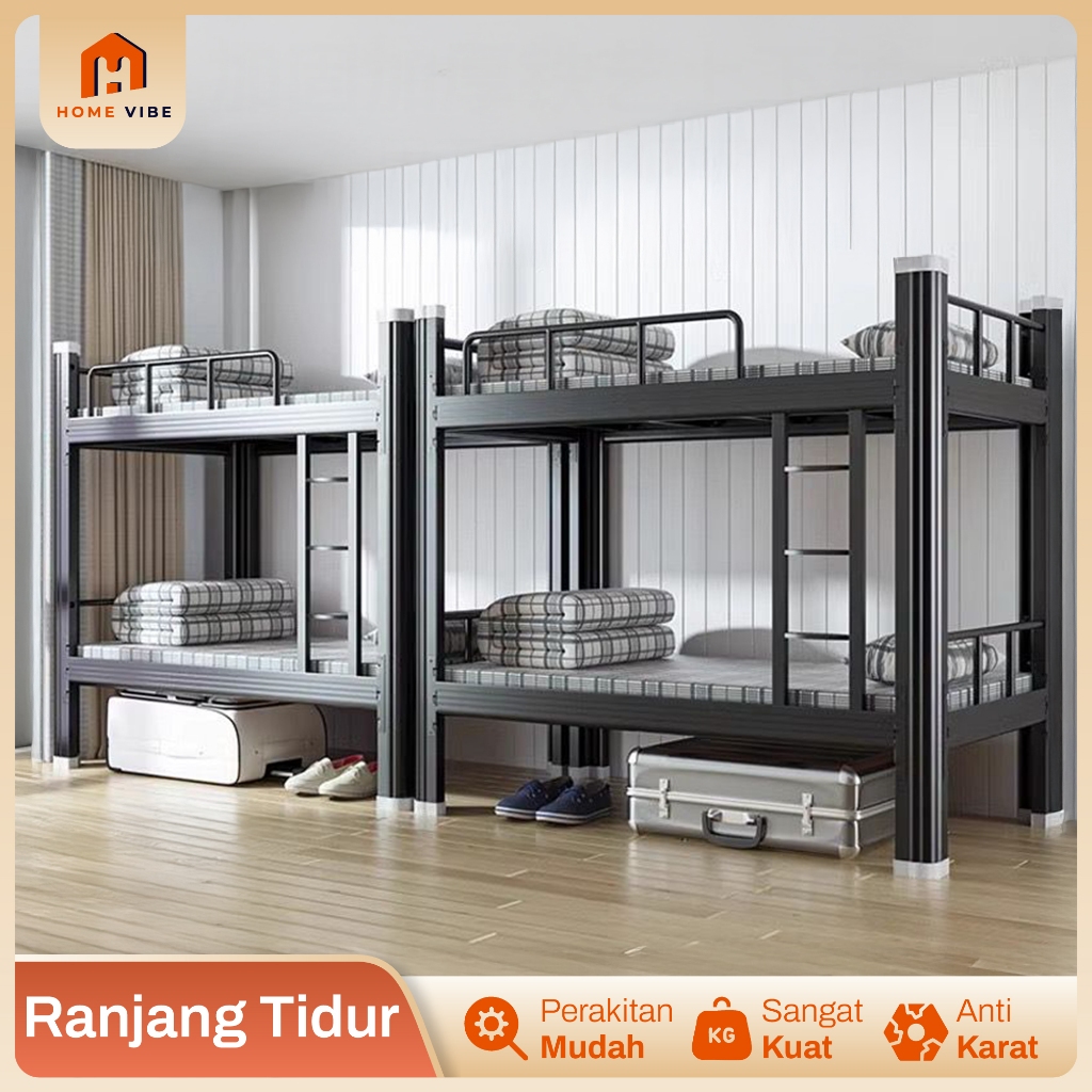 Ranjang Kasur Besi Tingkat 2 Susun Dipan Tempat Tidur Anak 90x200 100x200 120x200 Kuat Anti Karat