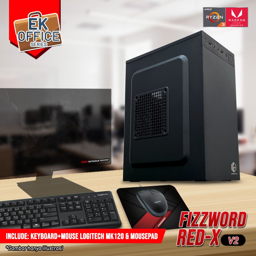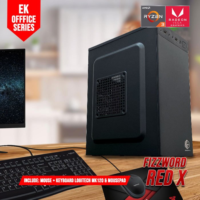 EK Office Fizzword Red-X - PC Rakitan Gaming Ryzen 3 3200G RAM DDR4 16GB - Enter Komputer
