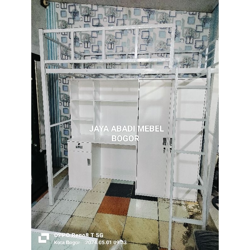 Ranjang tingkat besi set lemari+meja belajar 90x200,120x200,160x200 khusus Jabodetabek