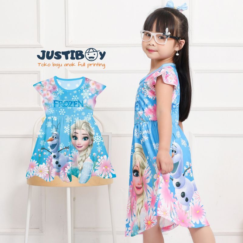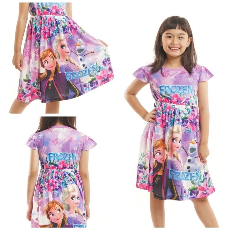 Dress Anak Perempuan Frozen Lengan Pendek / Daster Anak Cewe Elsa Anna Umur 2 - 9 Tahun [ABEL]