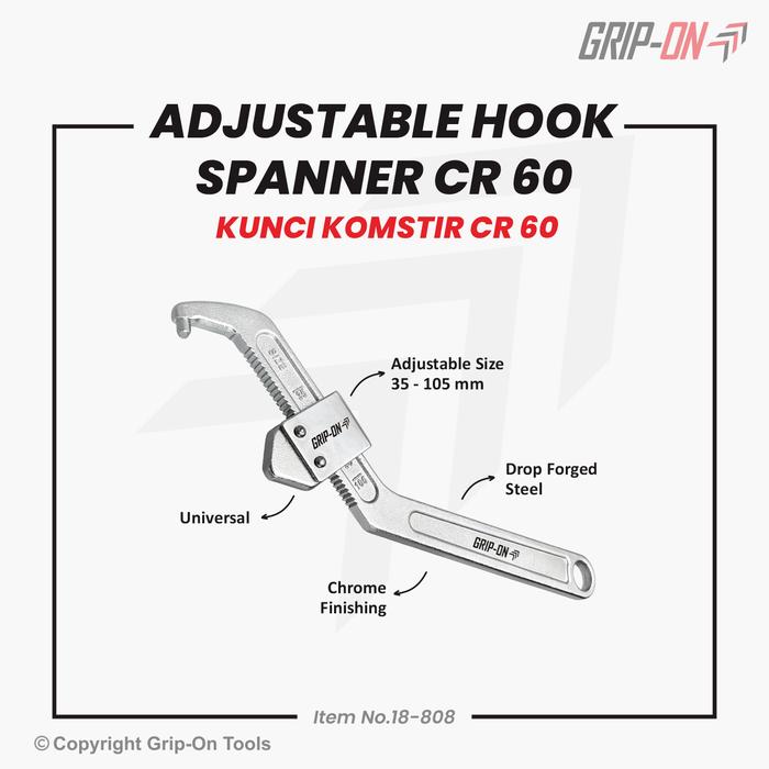 GRIP-ON ADJUSTABLE HOOK SPANNER CR 60 KUNCI MUR KOMSTIR UKURAN BESAR