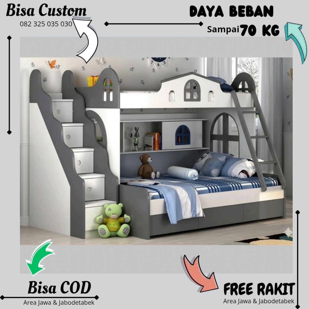 Ranjang Tingkat 2 Susun Minimalis , Tempat Tidur Kayu Anak Laki-laki