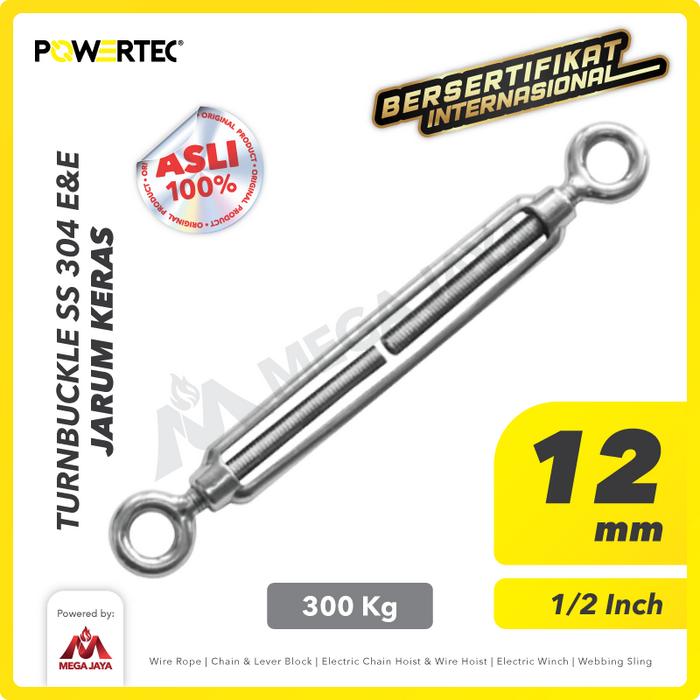 POWERTEC TURNBUCKLE / JARUM KERAS SS 304 EYE & EYE M12 SPAN SKRUP