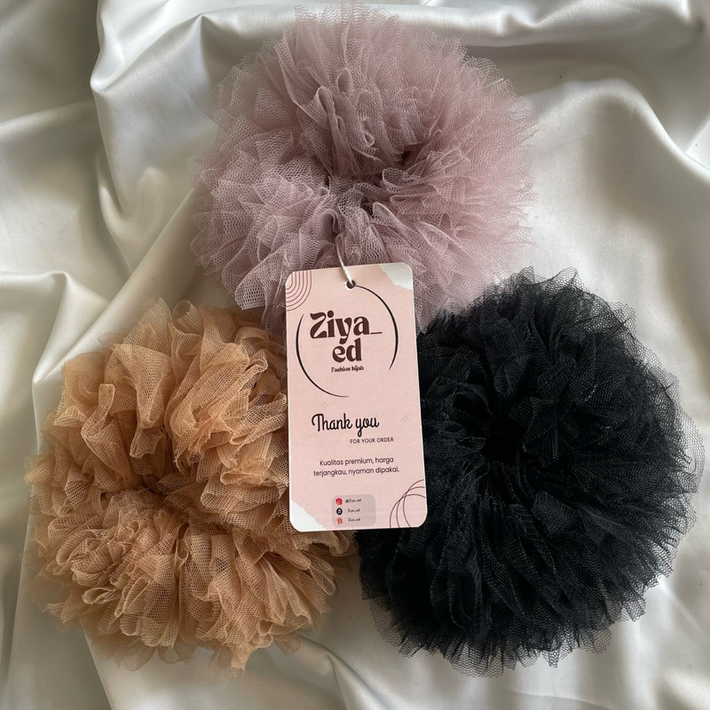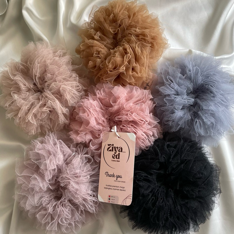 SCRUNCHIE CEPOL HIJAB TILE TULLE PREMIUM IKAT RAMBUT ANTI PUSING ANTI KEMPES