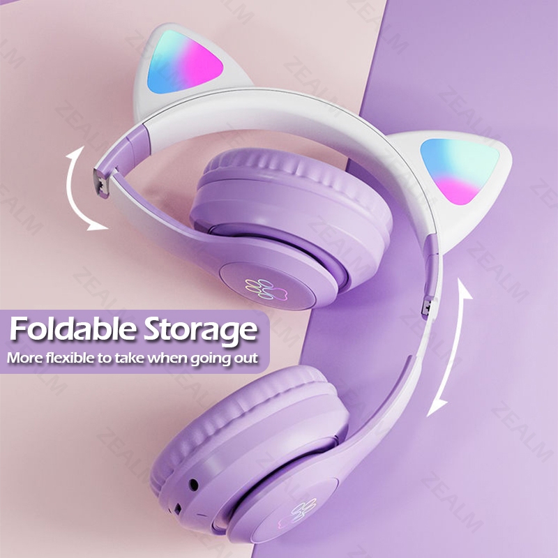 LED Color Light Cute Cat Ear Headphone with Mic STN28 Pro Foldable Wireless Headphones Bluetooth Earphone HiFi Stereo Headset Bluetooth