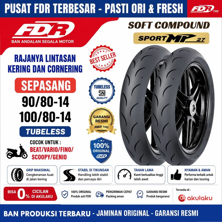 [Star] Ban Donat Ring 14 Tubeless Fdr Mp27 90/80 & 100/80 Ban Motor Depan Belakang Soft Compound Original Murah