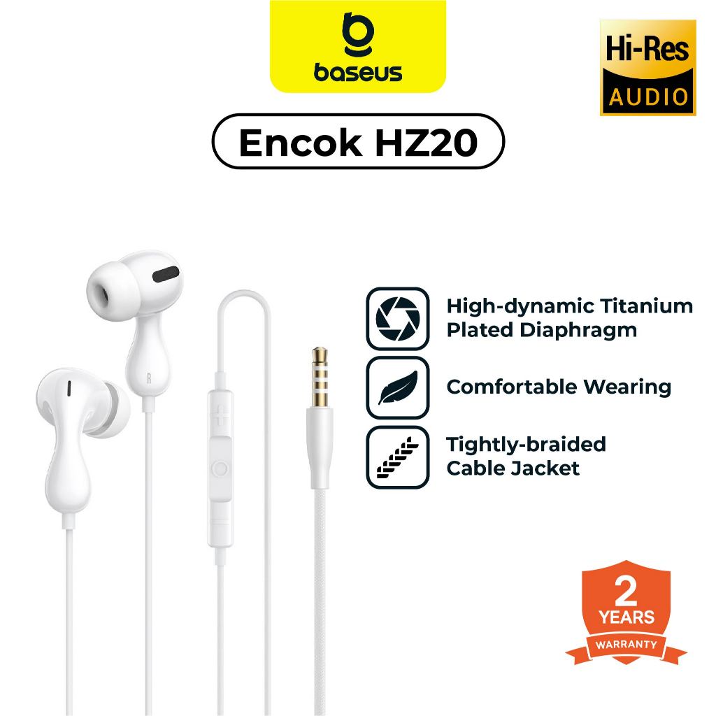 BASEUS Headset Encok HZ20 Wired Earphones + Mic | Handsfree Kabel Jack 3.5mm Garansi 2 Tahun