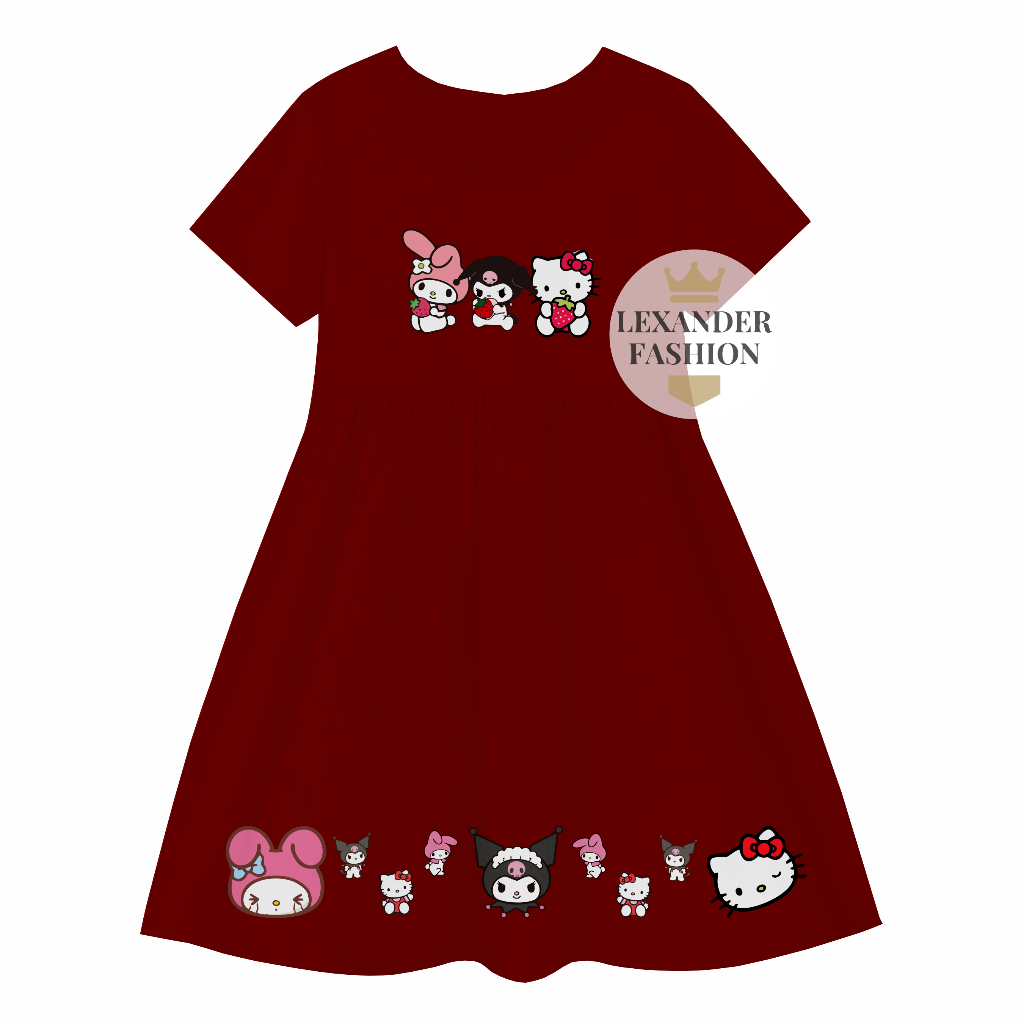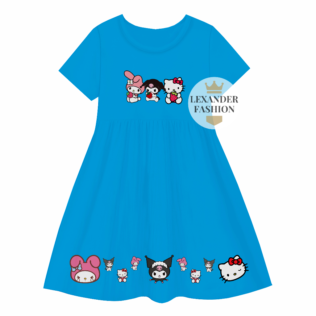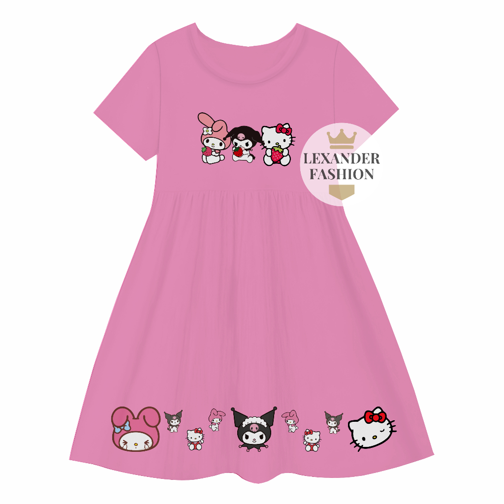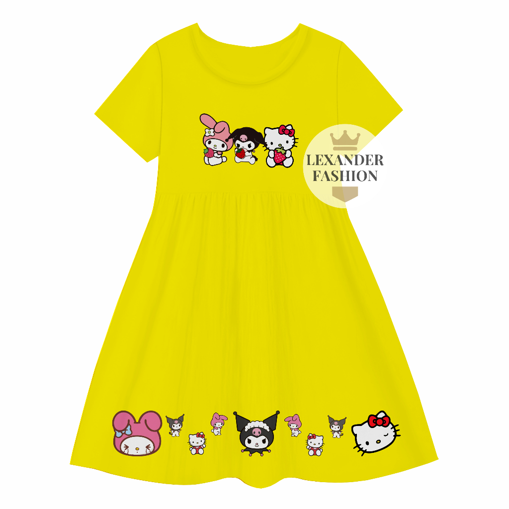 Lexander Daster Anak kerut Motif Trio Mechi Dress Anak Perempuan 1 sampai 11 Tahun
