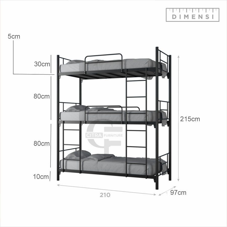 Citra Furniture SHUMO ® Ranjang tingkat Besi 3 Susun Bunk Bed Asrama Minimalis