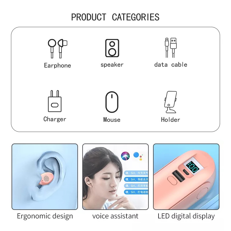 Viqoo Bluetooth Earphone with F7 Earbuds Dan Mini Fan Dan Flashlight Dan PowerBank 2000Mah Headset LED Kipas Powerbank 4 In 1 T64