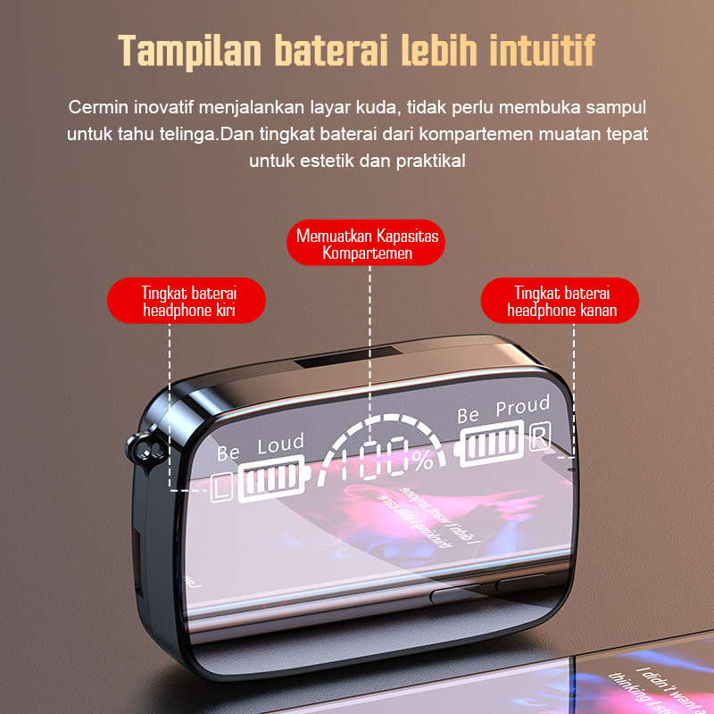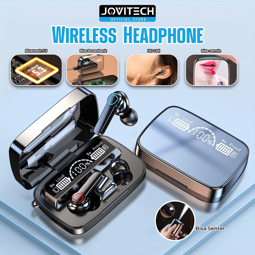 Jovitech Headset Bluetooth TWS Gaming 3in1 Flashlight LED Display Powerbank Cermin HiFi Stereo EP20