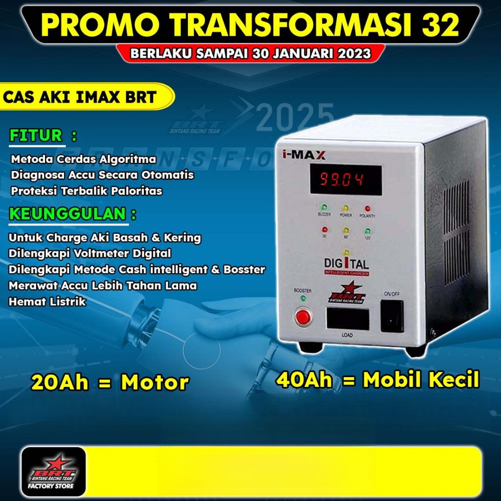 [Star] CAS AKI BRT 20 AMPERE & 40 AMPER MOTOR DAN MOBIL ACCU IMAX I MAX 20AH 40AH 20 40 AH CHARGER SMART BATRE BATTERY C
