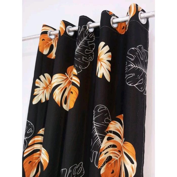 Gorden Tirai Smokring Ring Bulat Motif Kotak Hitam Estetik Ukuran Jendela & Pintu Kain Katun T200Cm Gratis Tali Dan Hook