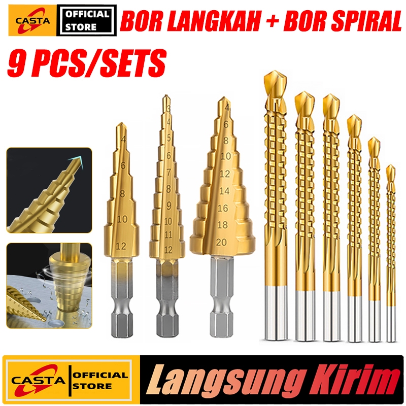 [PROMO] Set Mata Bor Langkah & Gergaji HSS Titanium 9 Pcs Kombinasi Bor Pagoda dan Bor Gergaji Serbaguna untuk Besi Kayu Plastik Akrilik