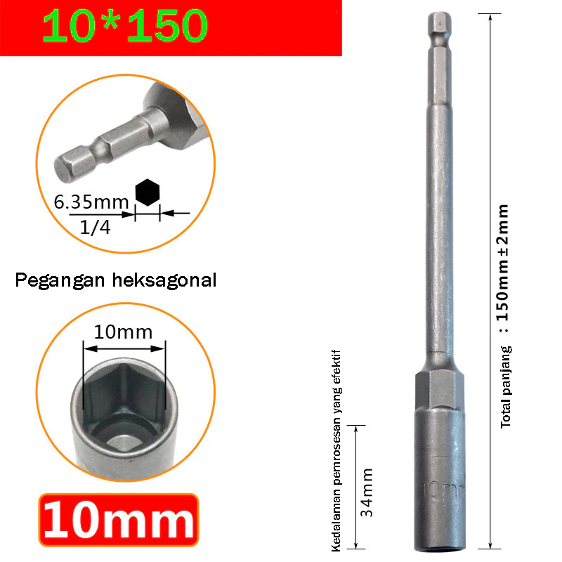 [PROMO] Adapter Soket Kunci Pas Ekstension Panjang 150mm Hex Nut Driver Sambungan Soket Kunci Pas 8101214mm Mata Bor Kunci Sok Hex Impact Drive bor listrik adaptor k