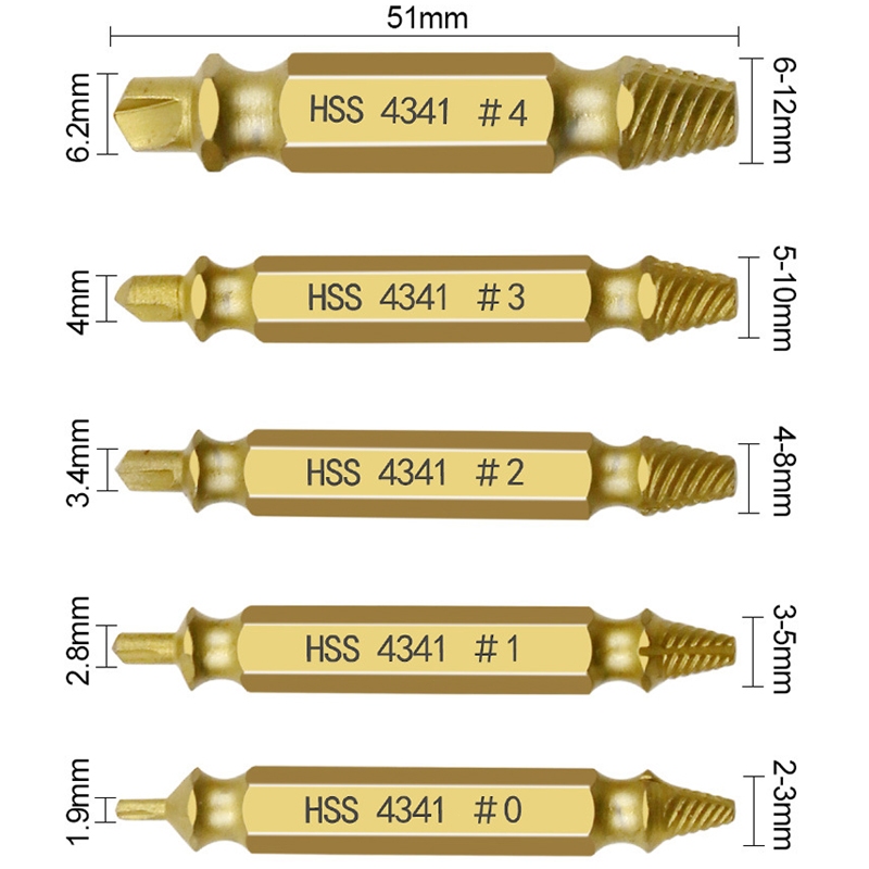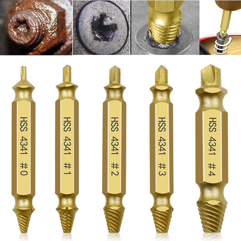 [PROMO] Set Ekstraktor Sekrup Patah 4PCS5PCS Silver Gold Tungsten Carbide Screw Remover Double Ended Drill Bit Untuk Baut Rusak Macet