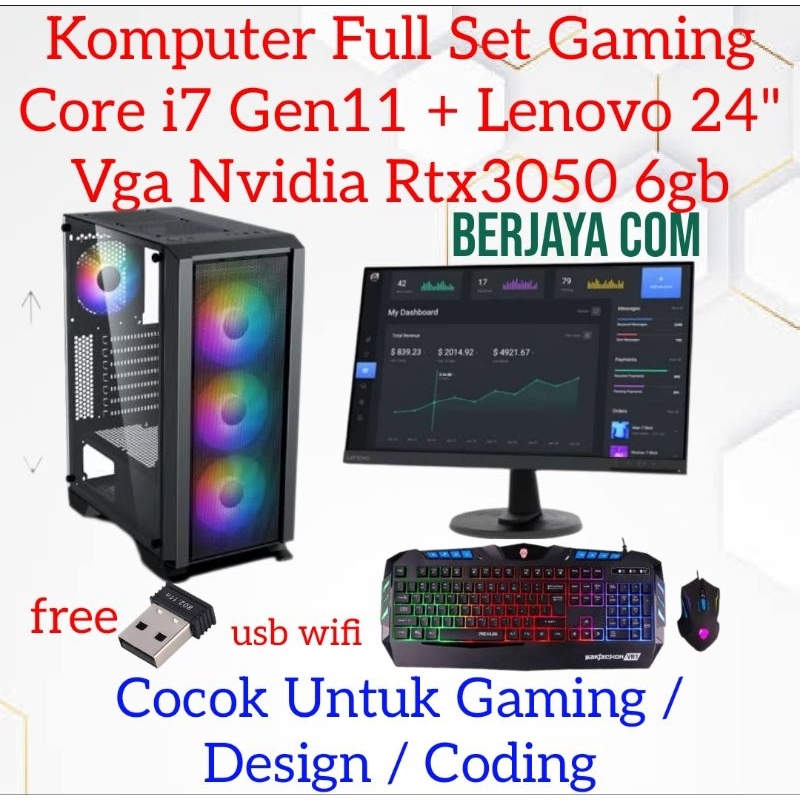 Full Set Core i7 Gen 11 - Led Lenovo 24" - Vga Nvidia Rtx3050 6gb - 32gb Ram - 1tb Ssd Nvme - Pc Rakitan Gaming - Komputer Design - Cpu ing