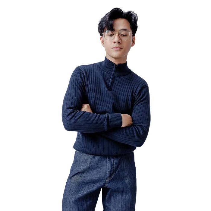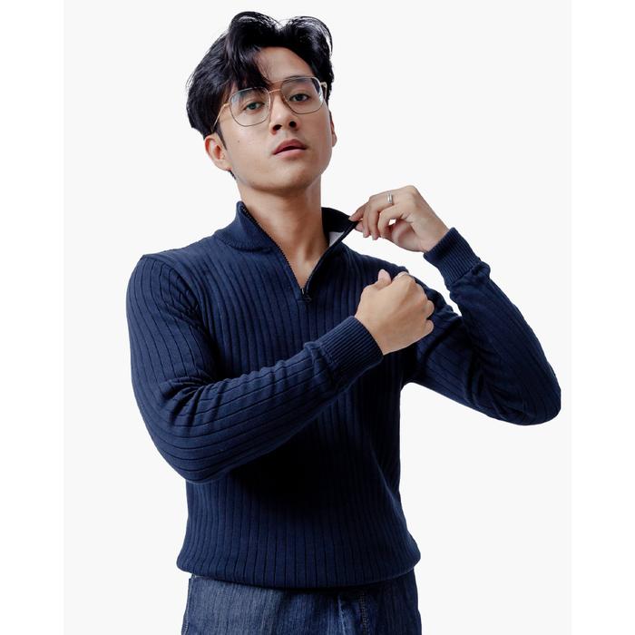 Gomuda Sweater Rajut Pria Slimfit Ribbed Quarter Zip Neck Knitwear Navy - Navy, L