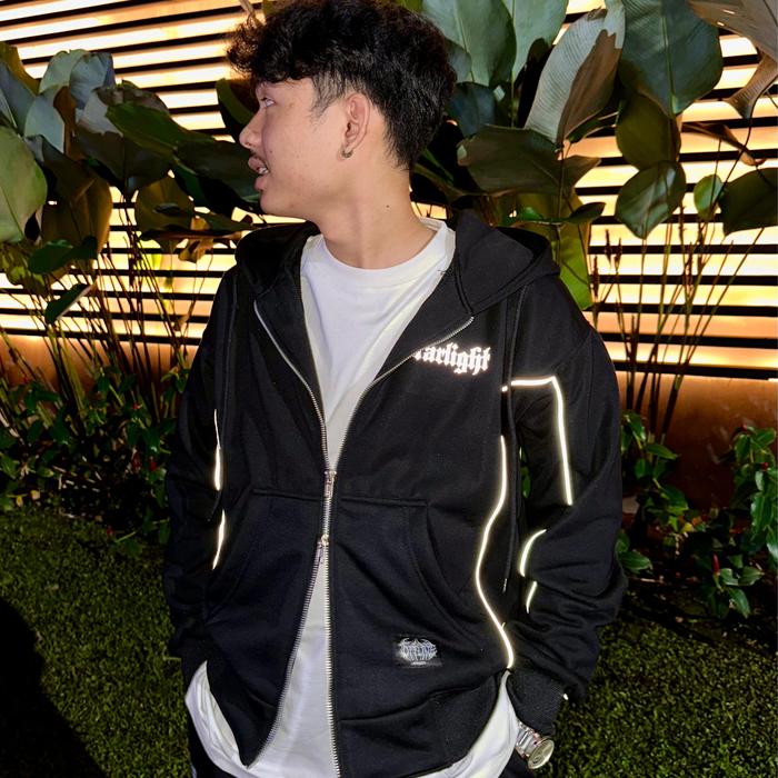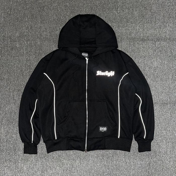 Offline Apparel Hoodie Boxy Double Zipper Starlight / Sablon Reflektif Nyaman Sweater - Hitam, M