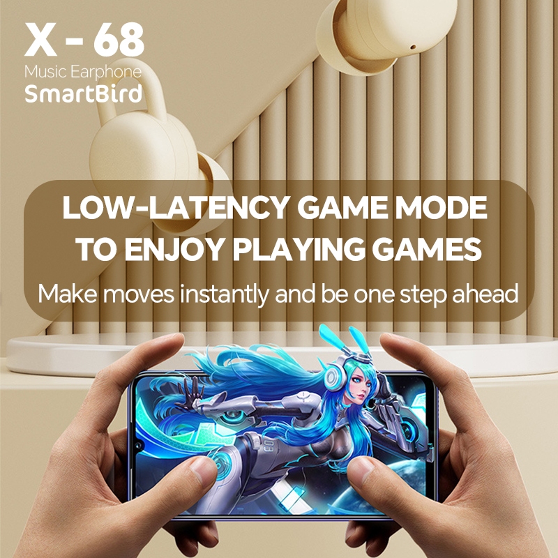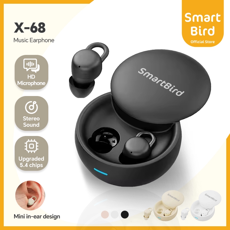 SmartBird Earphone X68 Bluetooth 5.4 Mini ultra light sleep HIFI TWS Wireless Headset Earbuds Headphone with Mic