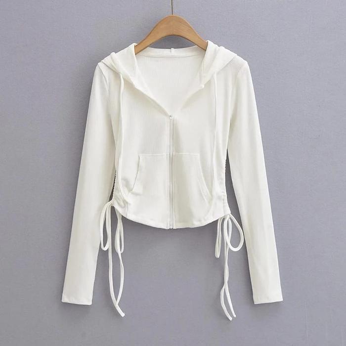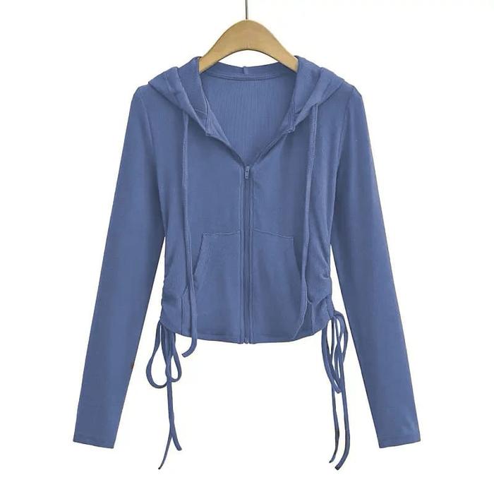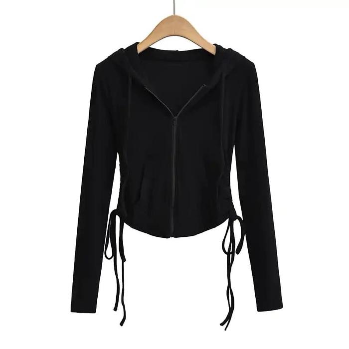 Sweater Wanita Hoodie Zipper Lula Crop Serut Fit Atasan Top Abu Hitam Tebal Topi Baju - Abu Tua, L