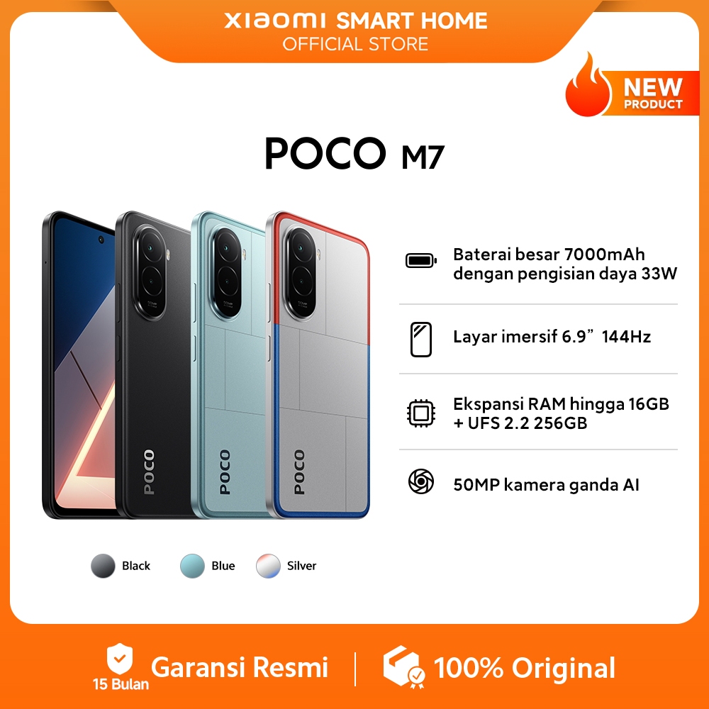 POCO M7 (8GB/256GB) Baterai besar 7000mAh dengan pengisian daya 33W | Layar imersif 6.9" 144Hz | Ekspansi RAM hingga 16GB + UFS 2.2 256GB | 50MP kamera ganda AI [Official Store]