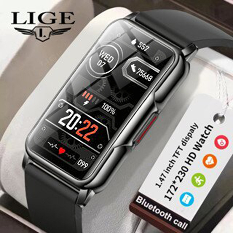 LIGE Jam pintar Pria Dan Wanita 1.47 Inci Sentuh Penuh Pemantauan Detak Jantung Pelacak Kebugaran IP67 Tahan Air Smartwa