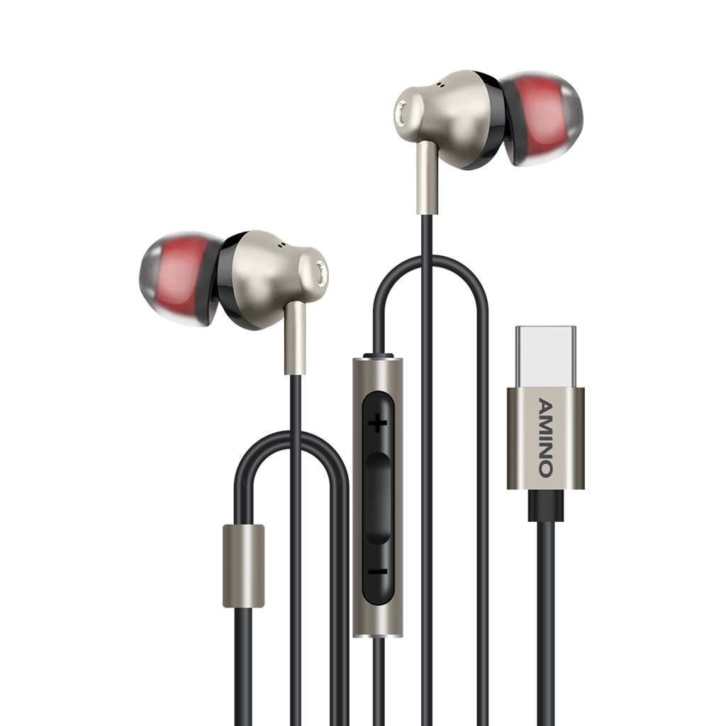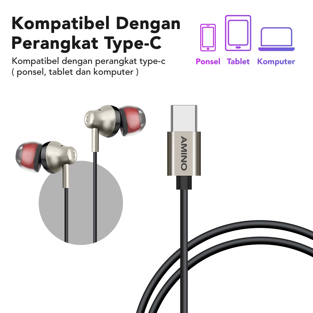 AMINO TYPE C Headset Handsfree Wired Earphone Mic TYPEC Jack Microphone Headset Bass In Ear Stereo Android Untuk Iphone 15 Pro Max