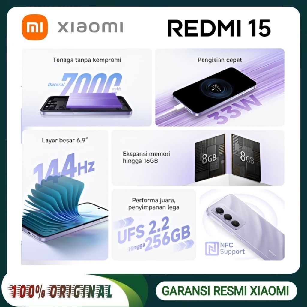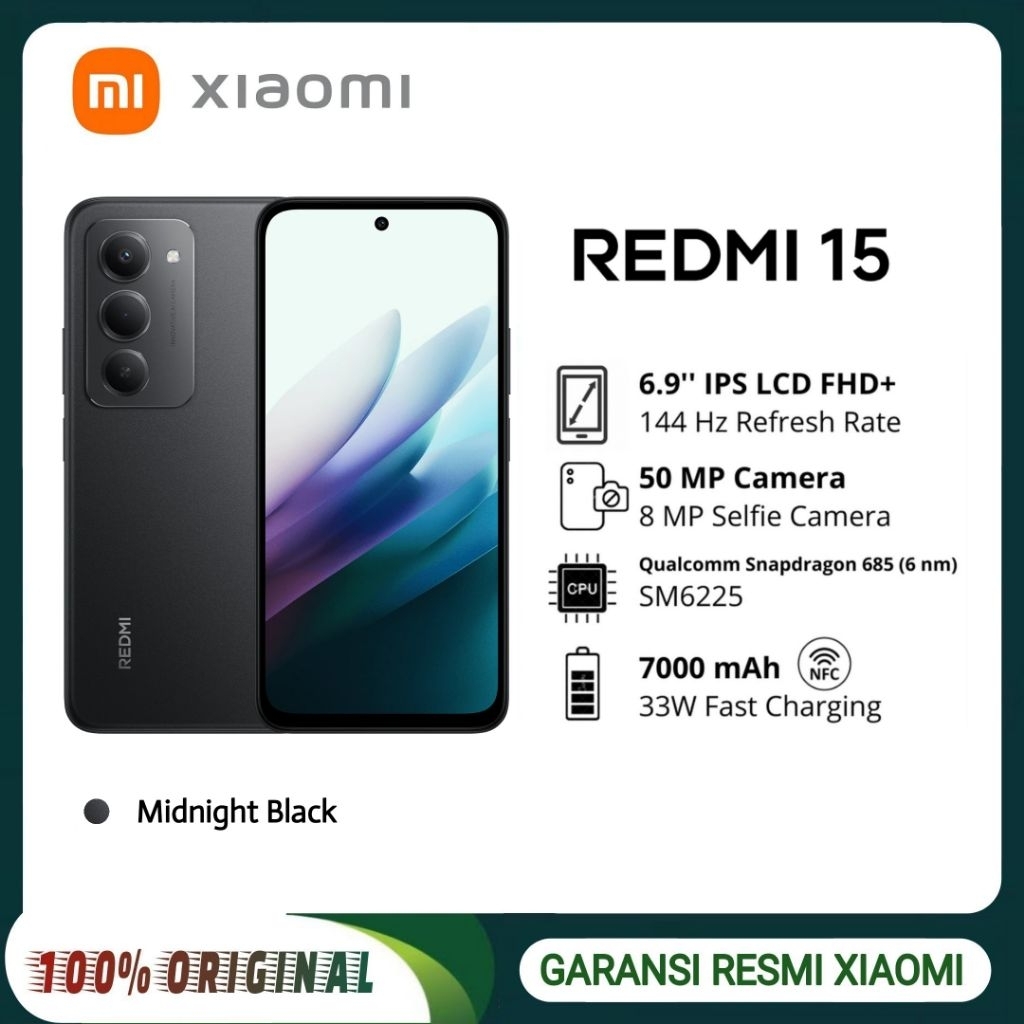 XIAOMI REDMI 15 NFC [8/128 GB] [8/256 GB] - QUALCOMM SNAPDRAGON 685 - BATTERY 7000MAH - RESMI XIAOMI INDONESIA