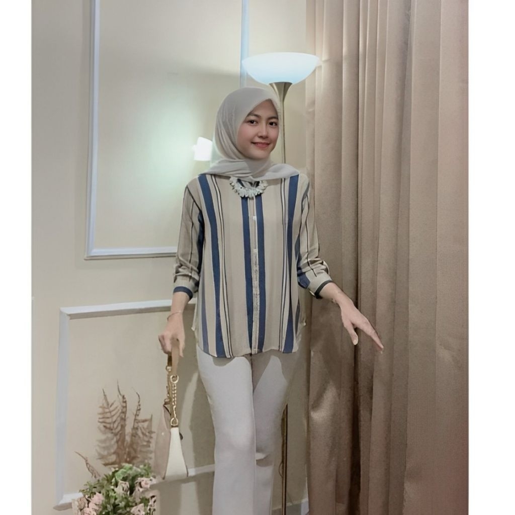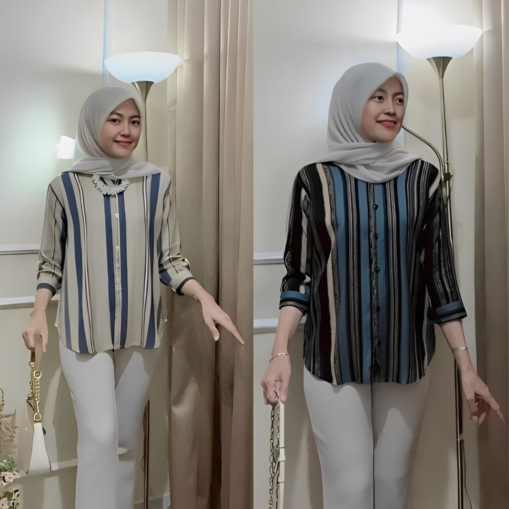 Atasan Wanita Rayon / Kemeja Rayon Motif Salur Kekinian Jumbo