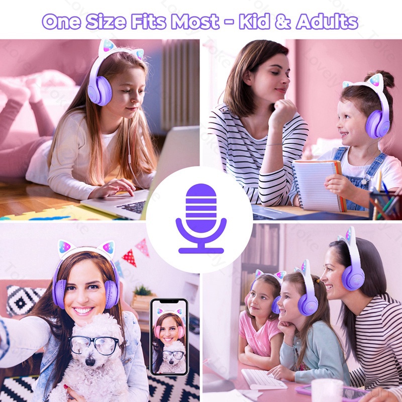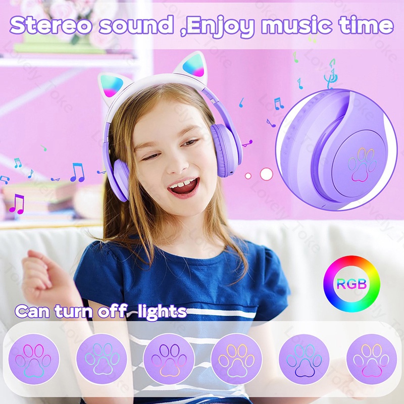 LED Color Light Cute Cat Ear Headphone with Mic STN28 Pro Foldable Wireless Headphones Bluetooth Earphone HiFi Stereo Headset Bluetooth