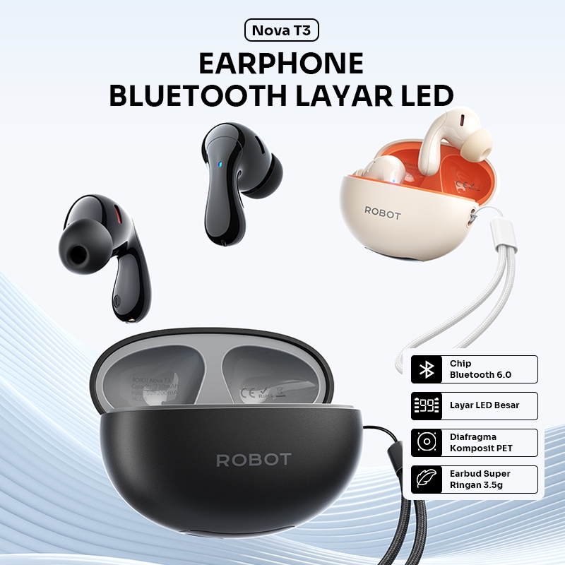 ROBOT Earphone Wireless Bluetooth 6.0 Suara Jernih Powerful Bass Pemakaian 37 Jam dengan Tampilan Daya LED TWS Nova T3 Garansi 1 Tahun