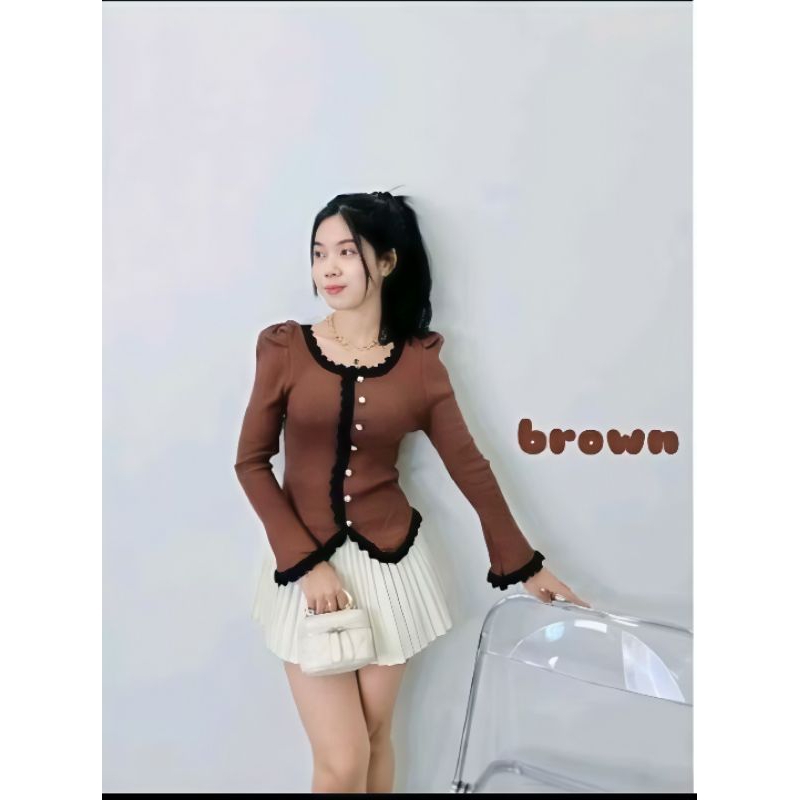 NIDHAN Atasan Wanita Lengan Panjang flare Vintage Rajut Premium korean Style