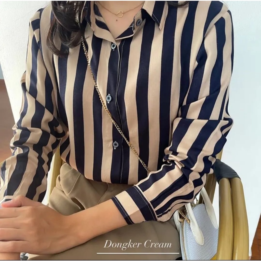 Kemeja Salur Wanita Jumbo Ld 90 - 124 Katun Premium / Atasan Garis Wanita Masa Kini