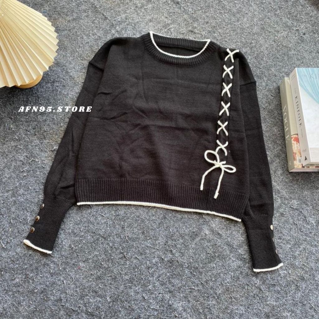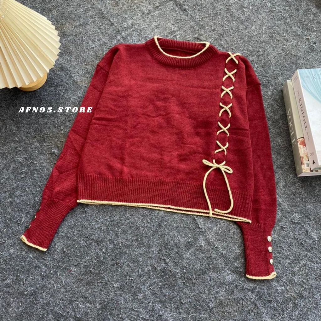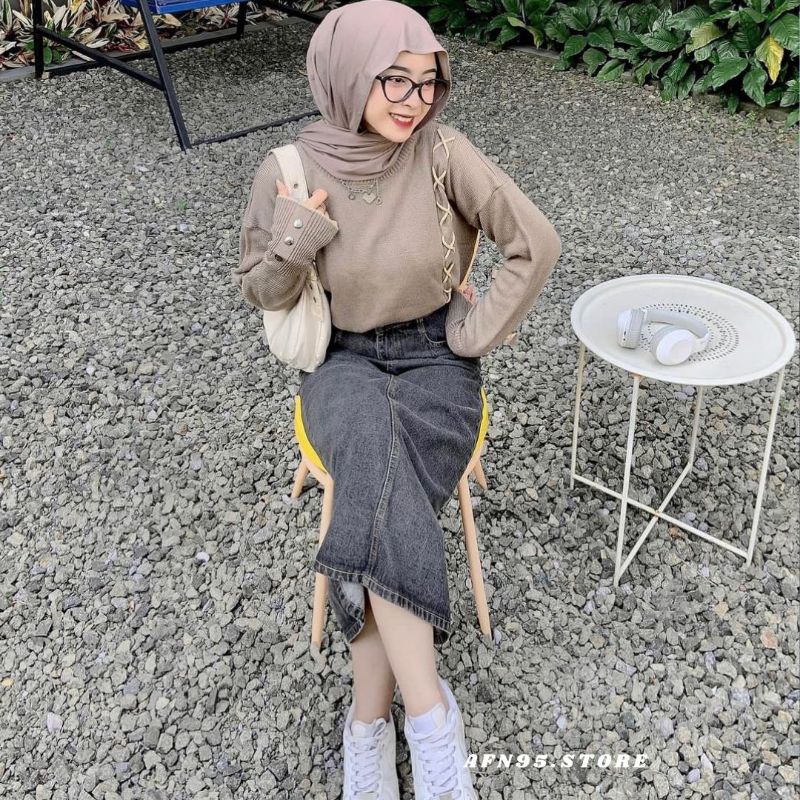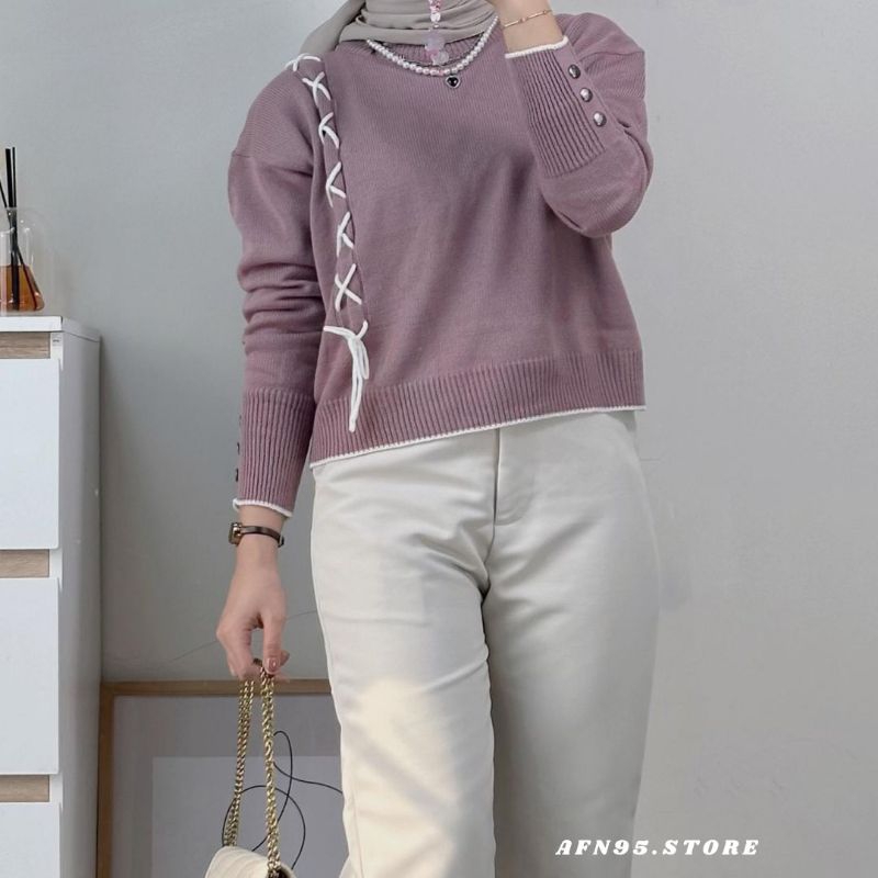 AFN95 - Blouse Wanita Lengan Panjang Rajut Knit Atasan Cewek Motif Tali Kekinian Korean Style CALISTA SWEATER