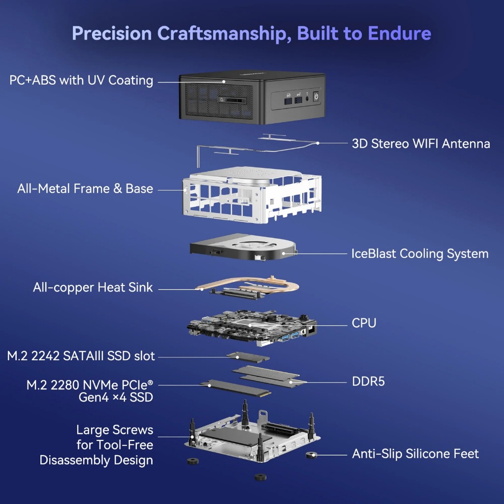 Geekom PC Mini Gaming IT15 Ultra 5 225H 64GB DDR5 1TB SSD Intel 130T GPU Windows 11 Pro Upgradeable
