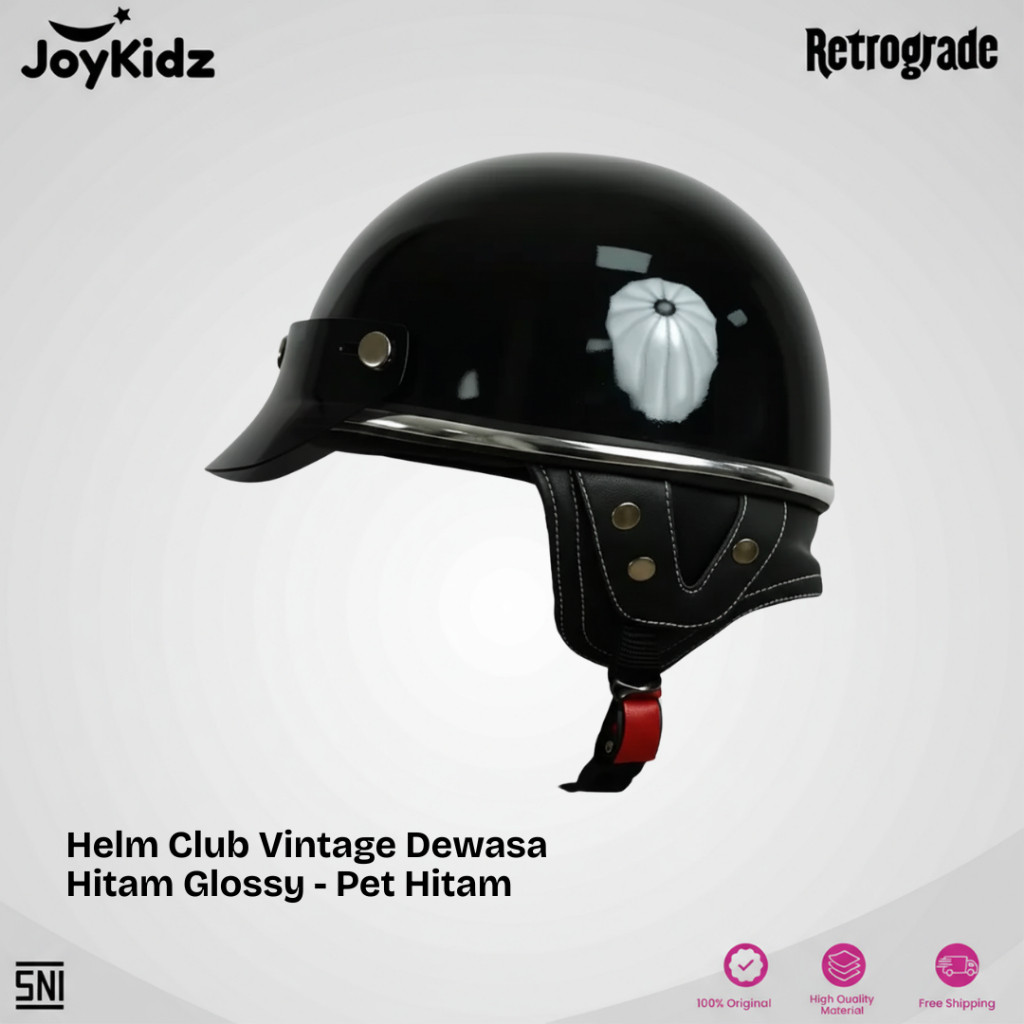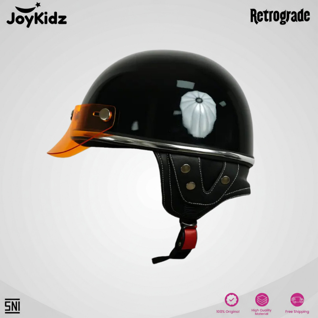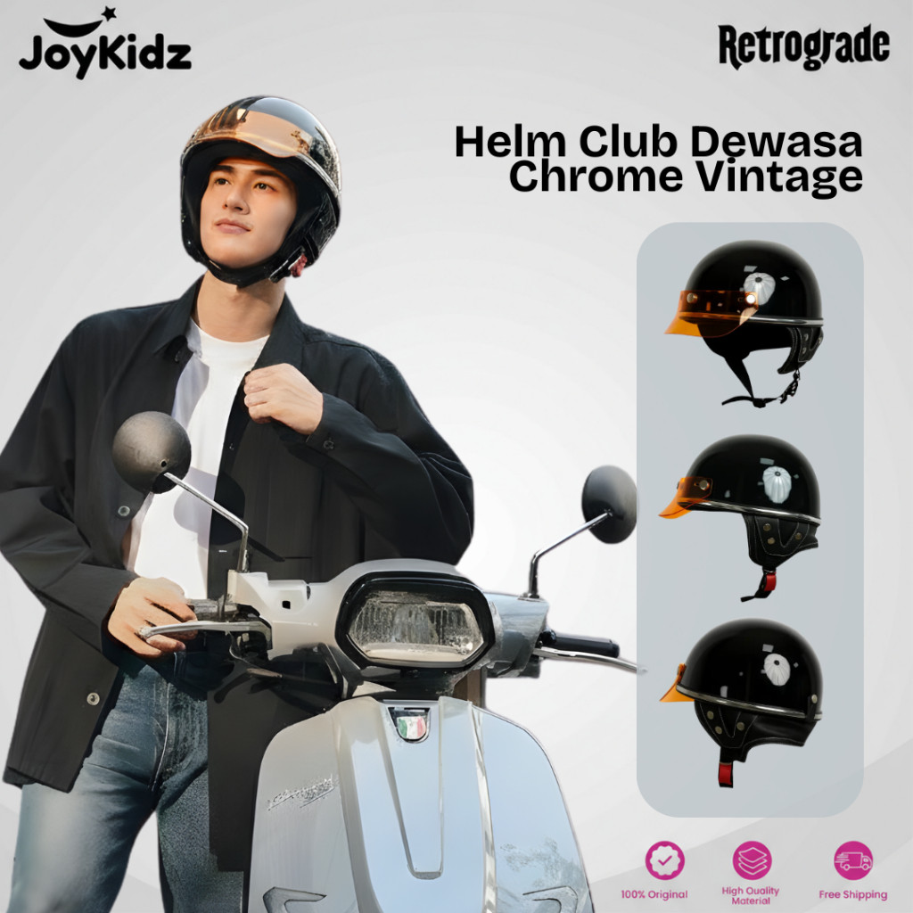 Joykidz X Retrograde Helm Chips Dewasa Club List Chrome Hitam Glossy
