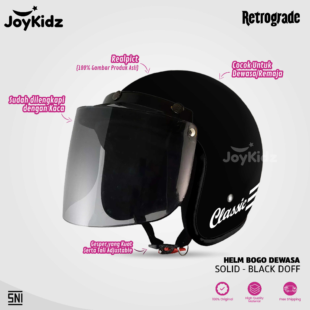 Helm Bogo Dewasa Classic Wana Hitam Gloss Doff Kaca Cembung Datar Kacamata